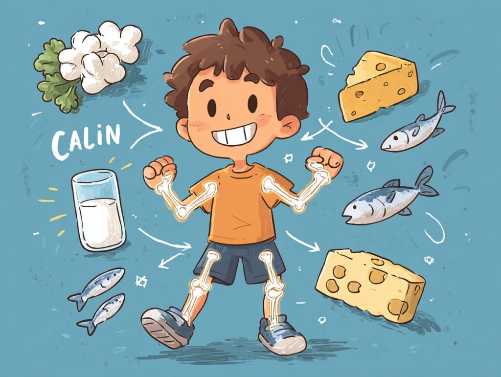 牛乳やチーズ、小魚など。骨や歯の発育に大切です。